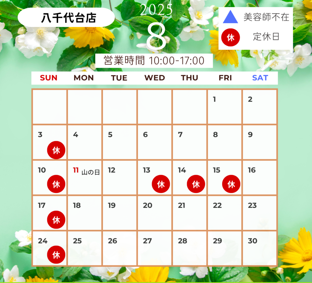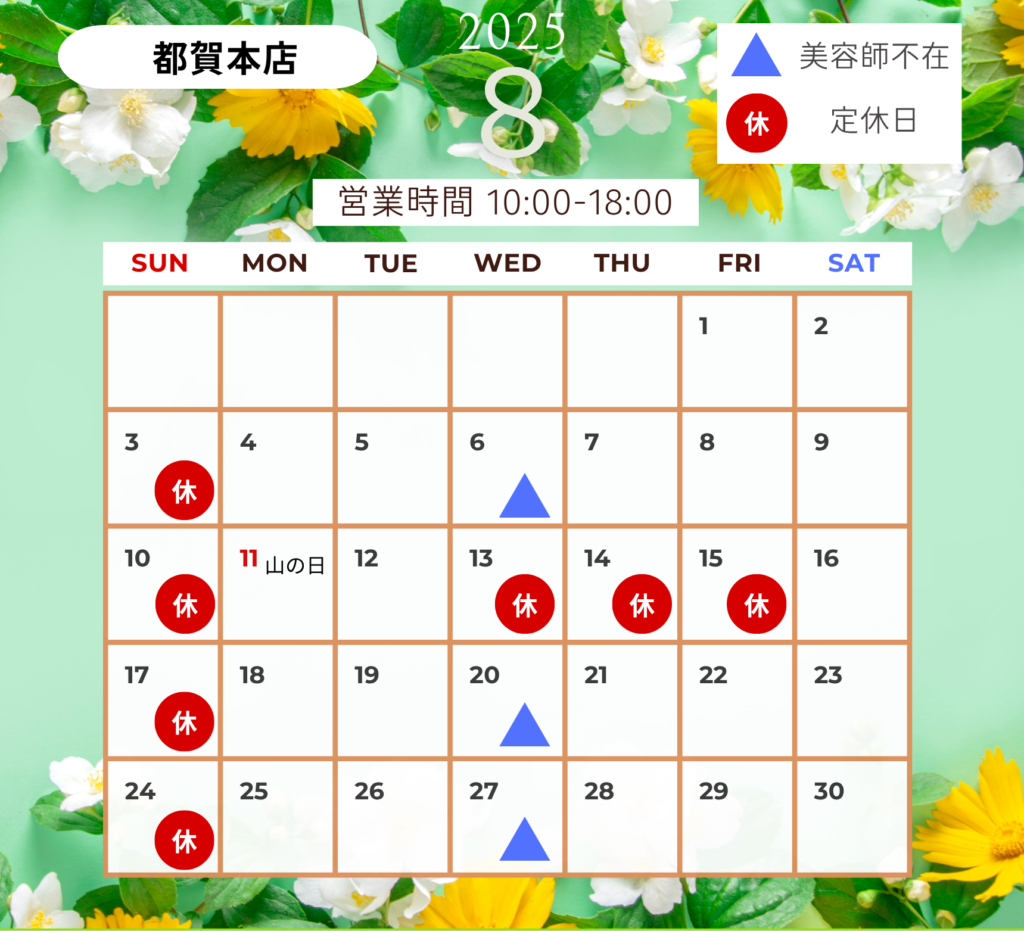 ご希望の日時がございましたら、どうぞお気軽にお電話にてご予約下さい。